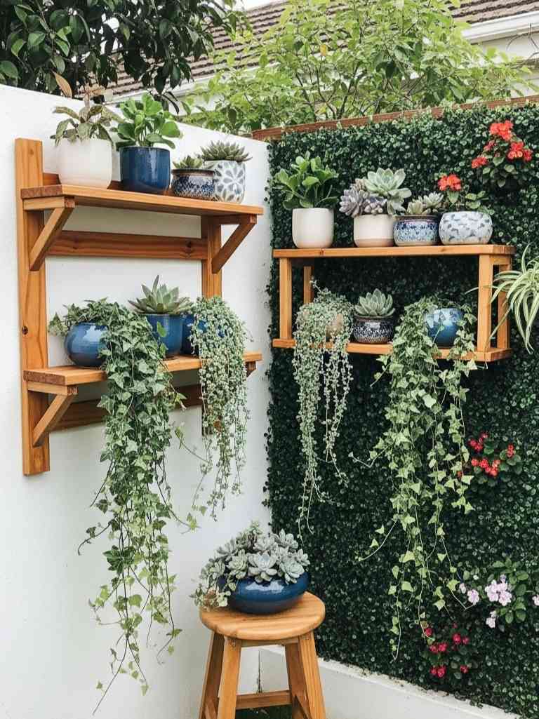 This vertical setup works wonderfully for small backyard garden ideas because it uses height instead of ground space. The corner slowly transforms into a lively cozy garden corner filled with greenery.