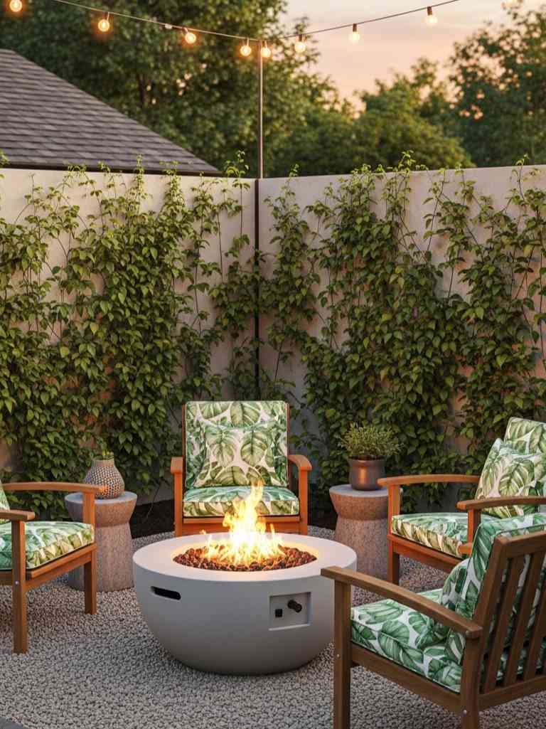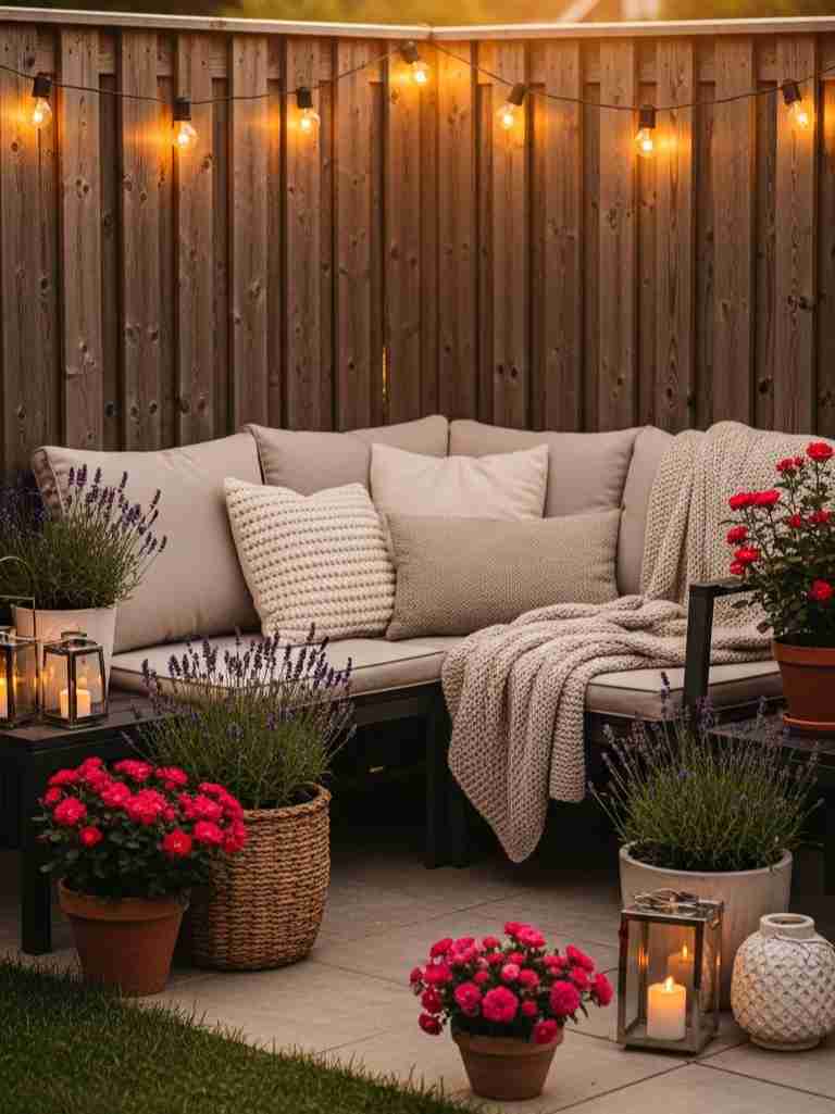 Lighting alone can transform a boring corner. I love using warm string lights to create a magical evening space.