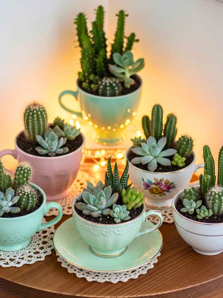 I had a few old tea cups that I didn’t want to throw away. One day, I thought, why not turn them into planters? I placed them on a small corner table, and that was it. My tiny garden was born.