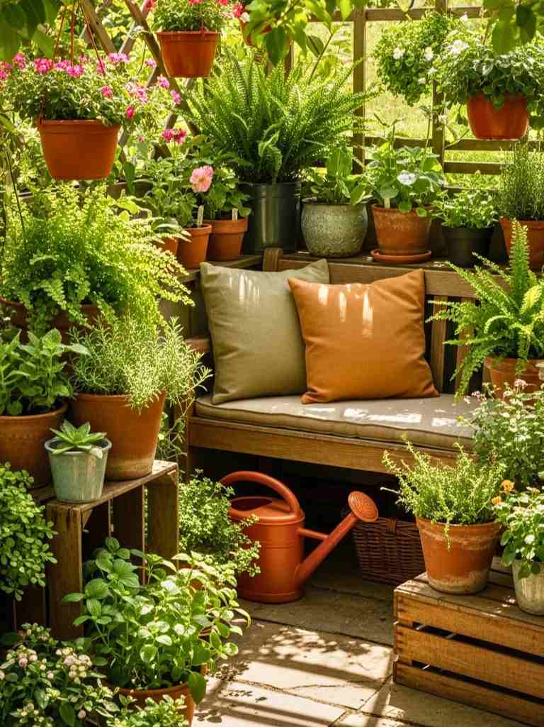 It turned into a cozy corner setup where I can sit and relax. I usually choose low maintenance plants so I don’t have to worry too much. This idea works well if you want both beauty and function. Your corner becomes a tiny escape. Just sit there with a cup of tea and enjoy your small space garden.