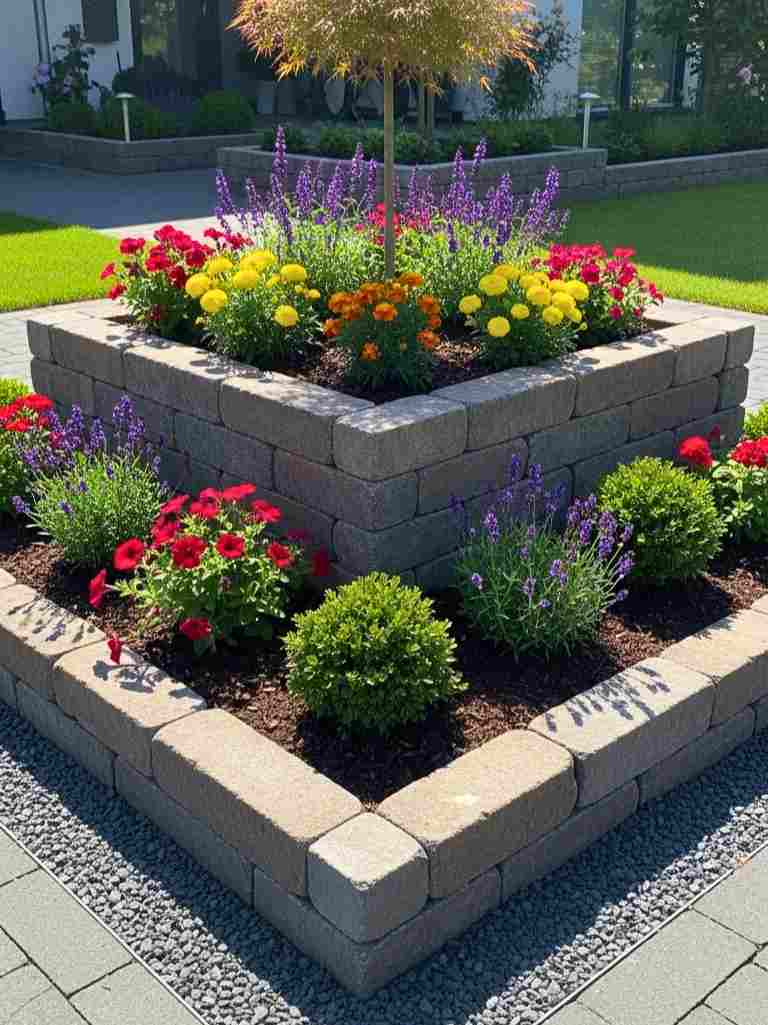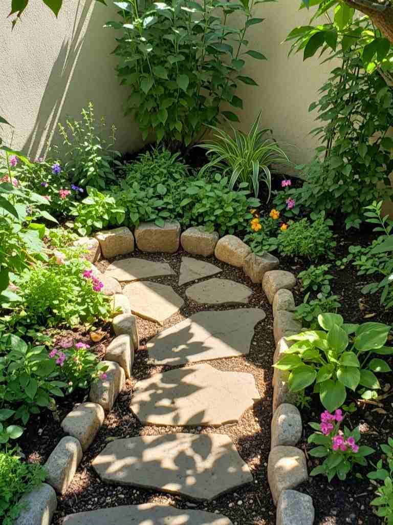 I like how this adds structure. It makes the corner feel planned, not random. You can use white stones, bricks, or even wood slices.