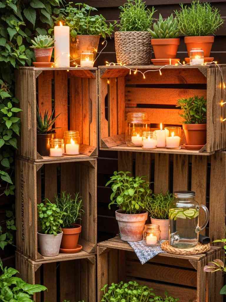 Old wooden crates can turn into a mini garden. Stack them in a corner and fill them with soil. You can grow herbs, flowers, or even small veggies.