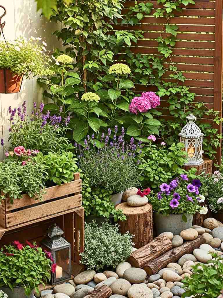 Plant herbs on top and trailing plants below. This gives a layered feel without taking up space. It works great for small yards or even balconies. You can mix basil, mint, and some flowers for color.