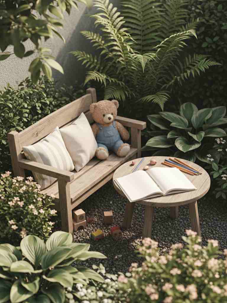 This corner supports reflection. It feels calm. It also helps children respect the space. Sitting quietly becomes part of garden care.