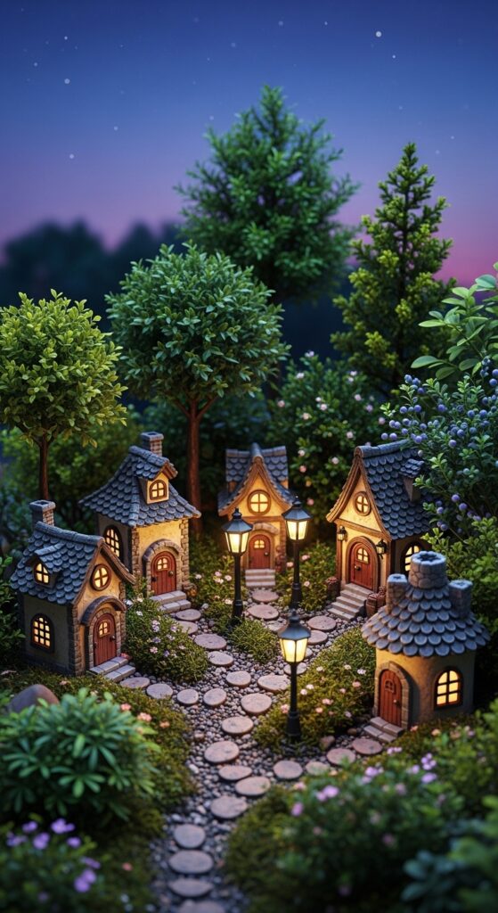 6. Miniature Houses & Lampposts Village