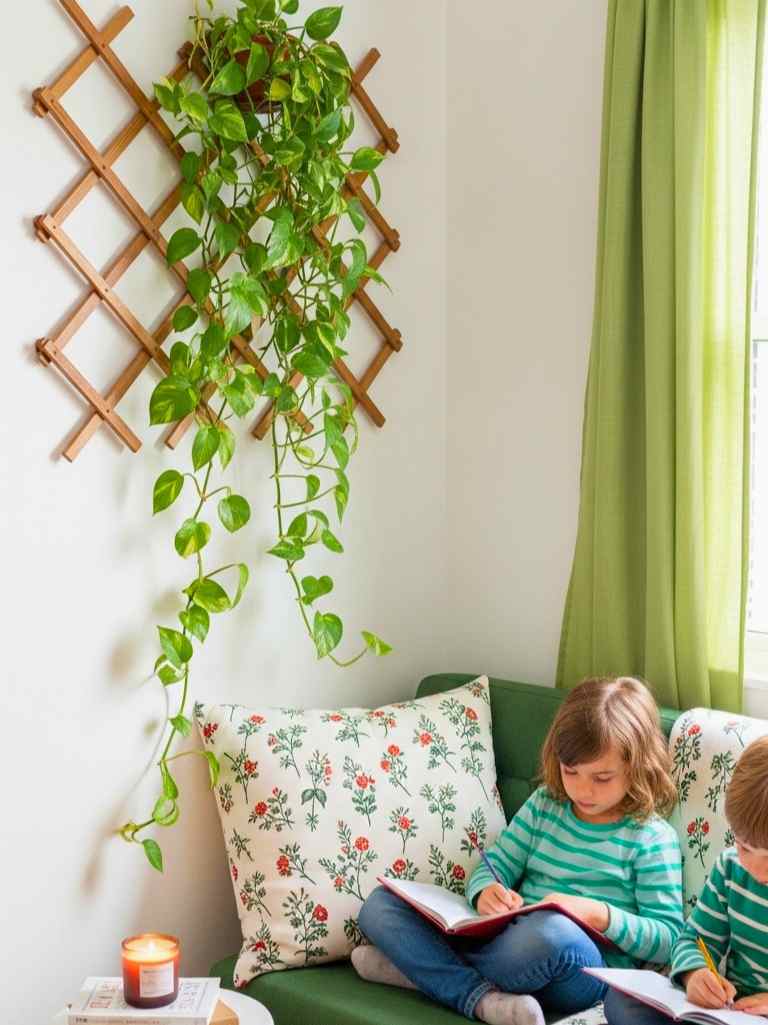 I remember setting a quiet corner near our sitting area where everyone naturally gathers after long days. I added pothos along a simple wall grid, and the space changed mood completely.