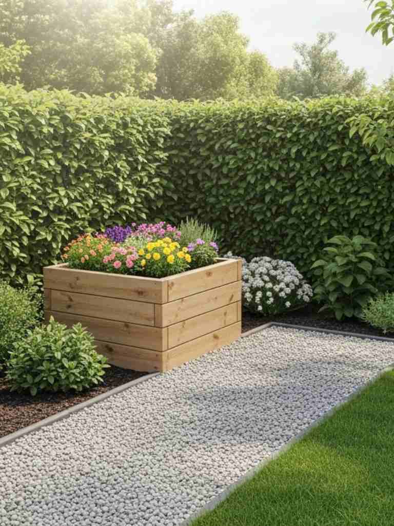 This small project gives you control over the soil quality and plant layout. You can grow flowers, herbs, or even vegetables. Raised beds also fit nicely with low maintenance garden landscaping because weeds are easier to manage. I like planting colorful flowers like marigolds or petunias so the bed pops with color. The height also saves your back from bending too much. Once you build one bed, you’ll probably want to build another.