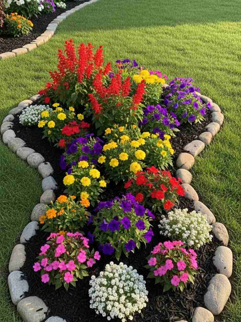 Sometimes a garden only needs a clean border to look polished. I like placing natural stones around flower beds. It’s a simple landscaping trick that changes the whole appearance.
