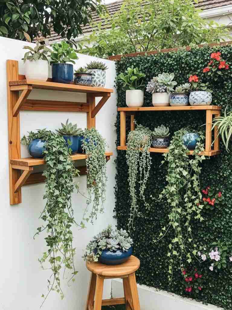 Herbs work perfectly here. Basil, mint, parsley, and thyme grow well in small containers. I love walking outside and grabbing fresh herbs while cooking. It feels satisfying. This type of vertical garden saves space and adds greenery to blank walls. It also makes your garden look creative and modern. Even beginners can build one within an hour or two.