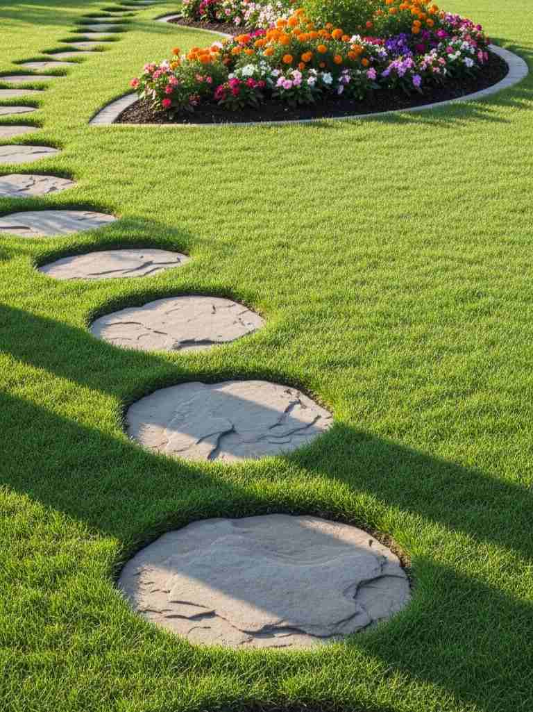 Stepping stones make a garden feel playful. I enjoy arranging them across grass or soil paths. You can buy ready stones or make them using concrete molds.