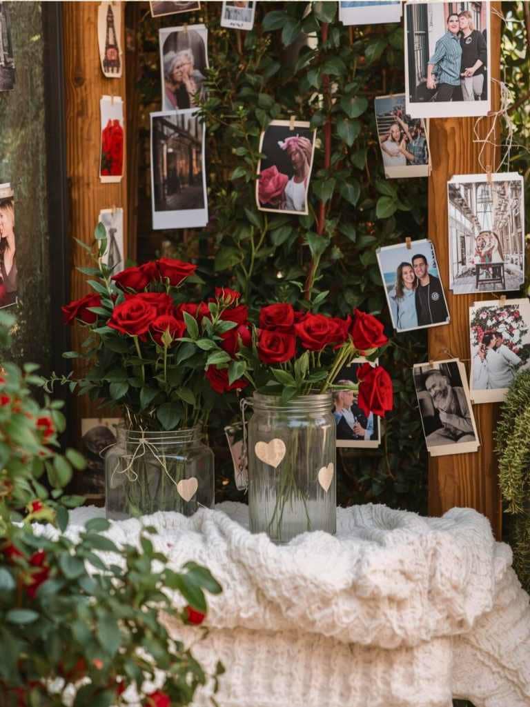 Create a memory wall using strings, clips, and printed moments. Add dried flowers or tiny heart decorations between photos. Use soft lights. Sit nearby with tea or coffee. This setup turns your balcony into a storybook. It works beautifully for a Valentine’s Day post. People love real emotions. This also creates timeless Valentine’s Day images that feel raw and honest.