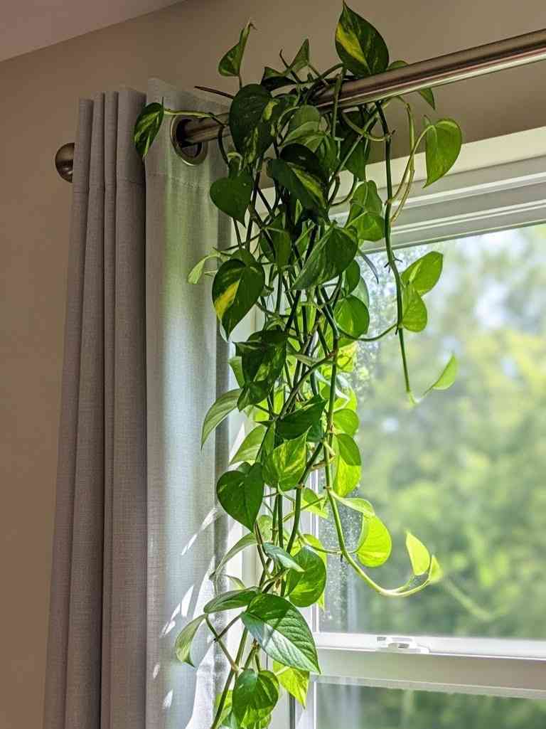I once tried something playful with my pothos near the curtains. The vine kept reaching upward toward the curtain rod. Instead of trimming it, I helped it climb.