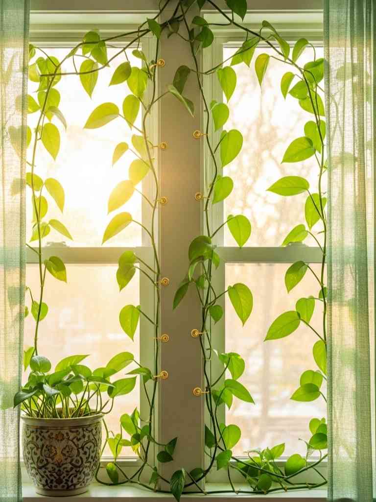 This idea came from a small accident at my place. I once placed a pothos beside the window and forgot about it for weeks. When I looked again, the vine had started wrapping around the window frame.