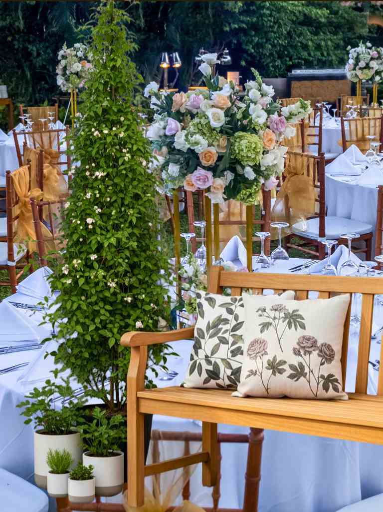 Around me, I placed a mix of plants. Some in baskets, some in clay pots. This created a soft, layered look. A small vertical plant wall at the back added height and depth.