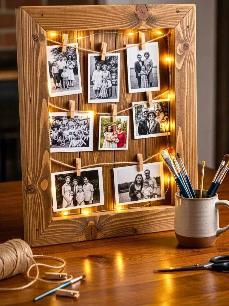 Printed photos feel special now. Choose one favorite picture. Or three. Use a wooden frame or cardboard. Add mini fairy lights around it. Battery ones are cheap and reusable. This also doubles as Valentine’s Day decorations later.