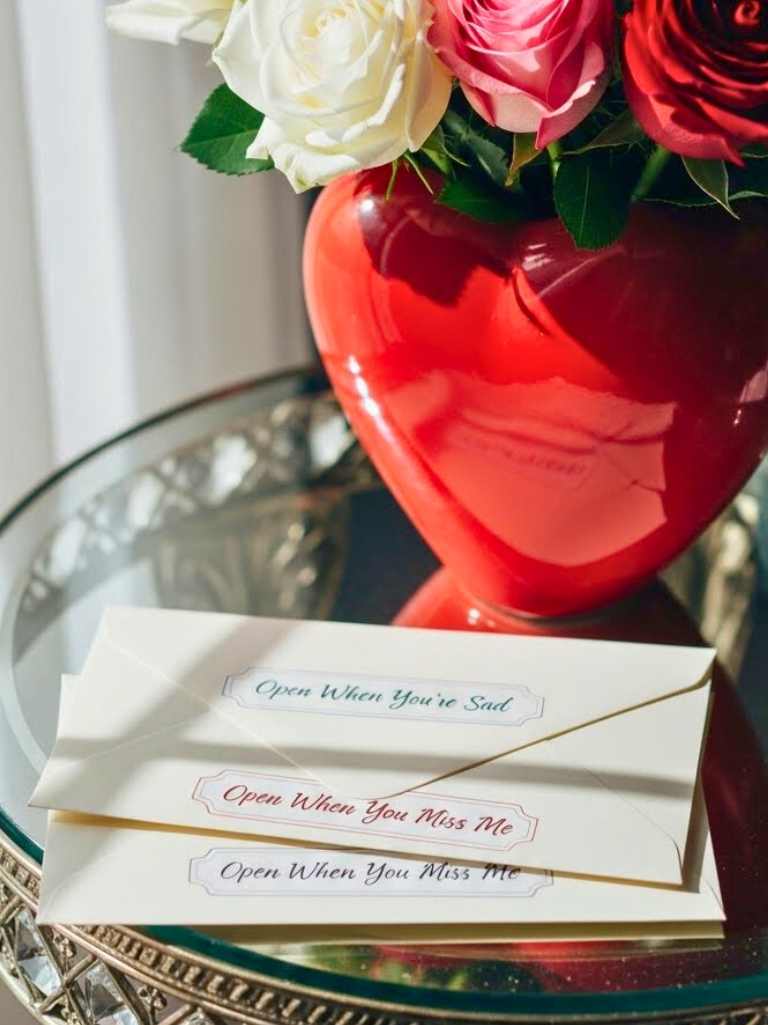 These letters feel like emotional first aid. Write envelopes labeled “Open when you’re sad,” “Open when you miss me,” and so on. Keep the content real. No dramatic poetry. Just you.