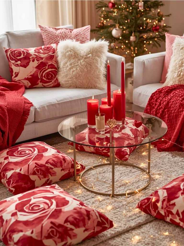 This setup works perfectly for relaxed Valentine’s Party Ideas For Adults. Think soft lighting, floor seating, and low tables. Candles, fairy lights, and plush cushions set the tone. Music stays slow and comforting. No loud beats. Guests can talk without shouting. Snacks matter here. Charcuterie boards, chocolates, and warm drinks feel right.
