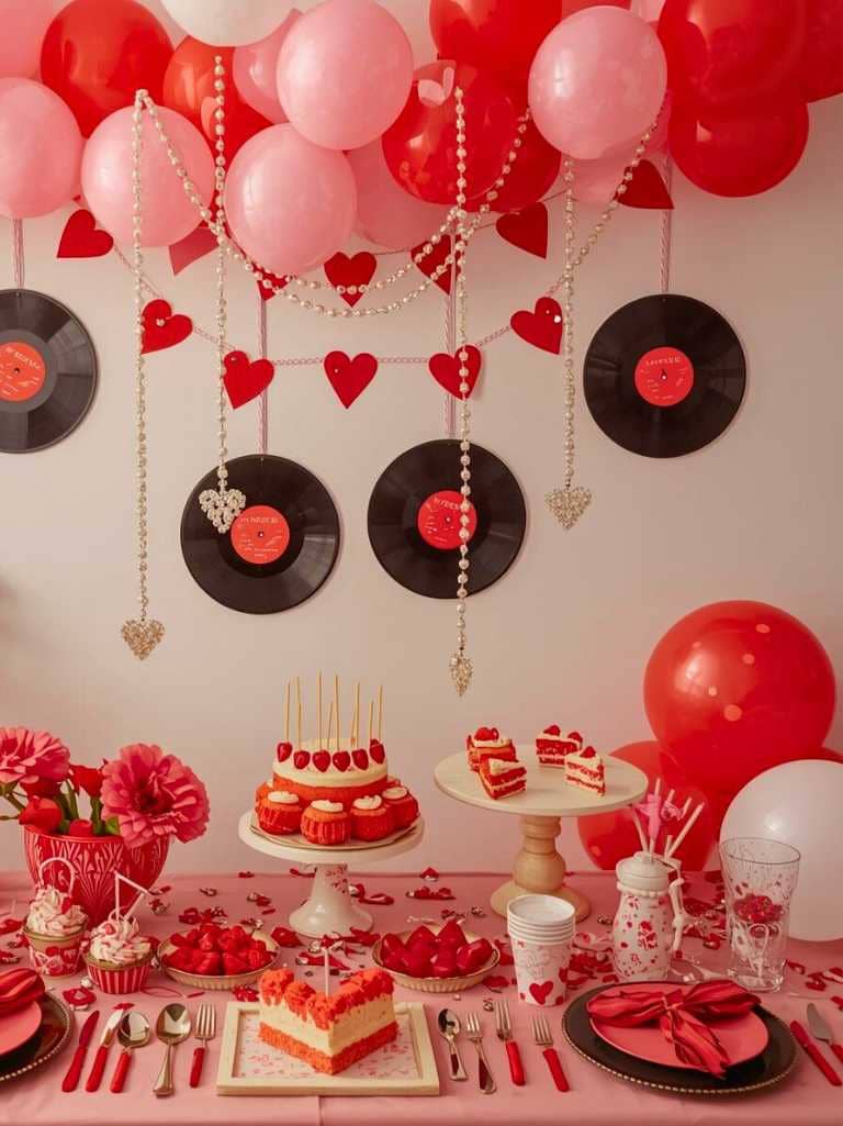 This idea brings playful energy. Think old-school romance. Polka dots, vinyl records, heart balloons, and vintage posters. A retro Valentine’s Day Theme Party works well for adults who love nostalgia. Dress codes make it more fun. Guests can wear classic red dresses, suspenders, or cat-eye glasses. Snacks can match the vibe. Milkshakes, cupcakes, popcorn, and soda bottles work great.